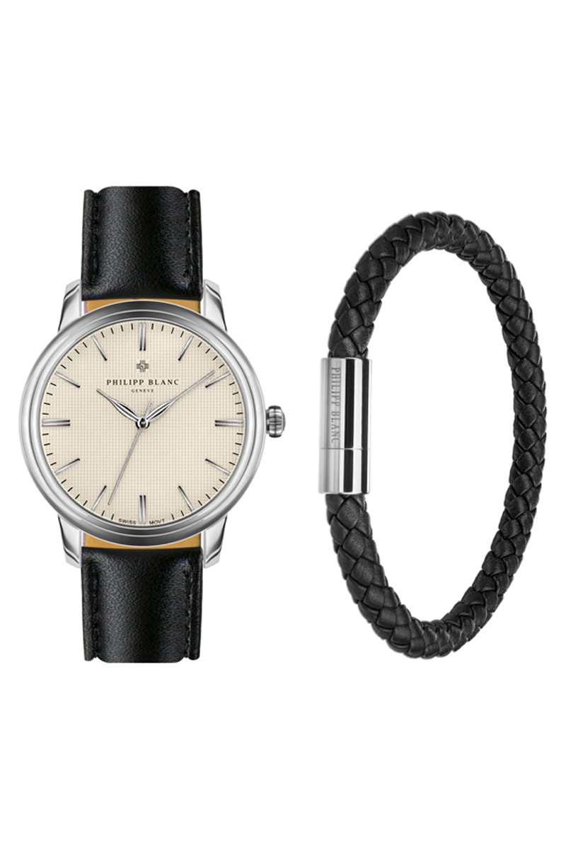 Estuche reloj de cuarzo de piel y pulsera de piel