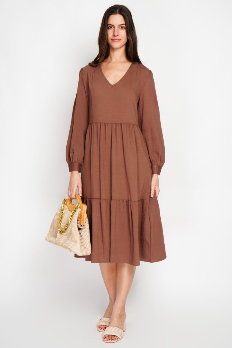 Vestido midi en lino - Marrón
