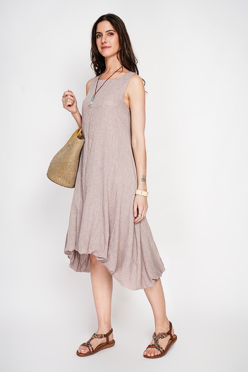 Vestido globo de lino - Beige