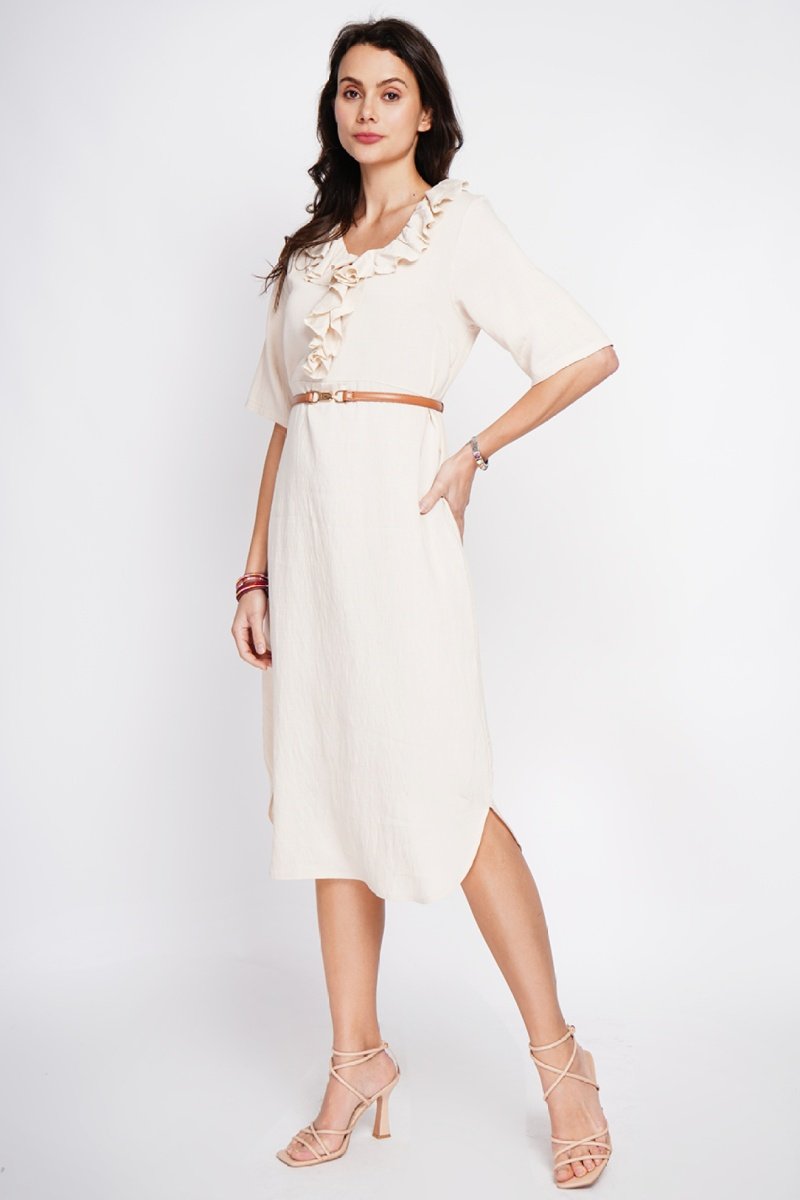 Vestido largo de lino - Beige