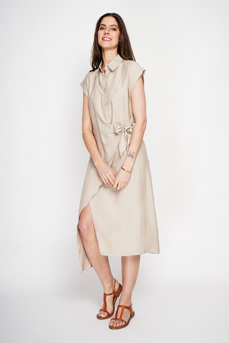 Vestido cruzado de lino - Beige