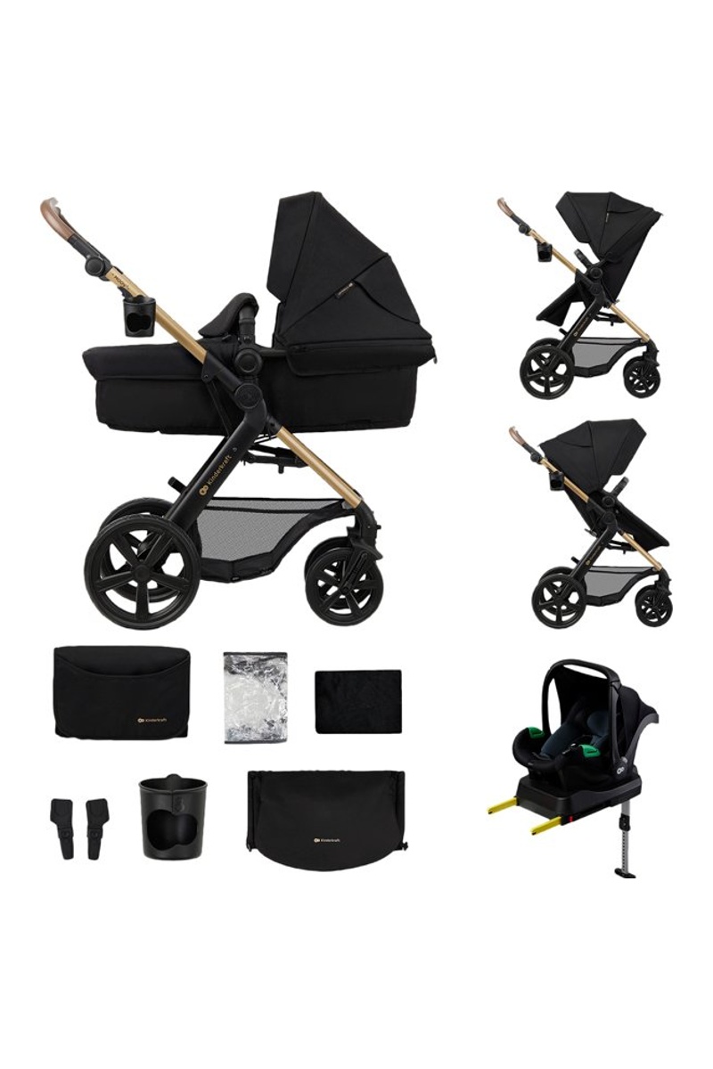 Incluye accesorios prácticos: portavasos, cubrepiernas universal para capazo y silla, mosquitera, funda para la lluvia, bolsa parental y adaptadores para la silla de coche. Además, incluye la silla de coche MINK PRO i-Size.