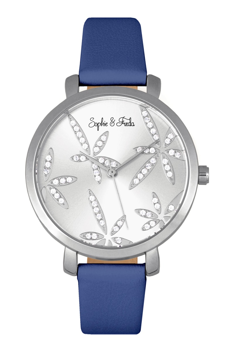 Reloj de cuarzo de piel - Azul rey y plateado