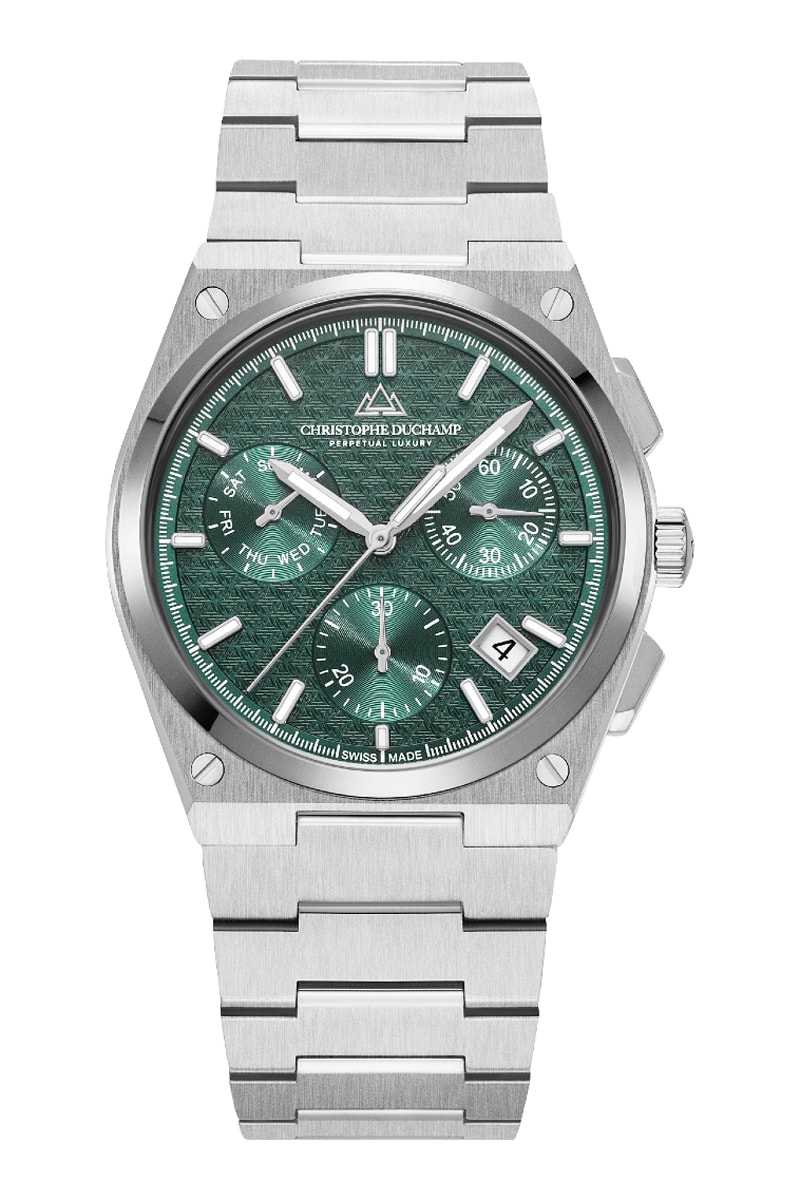 Reloj de cuarzo de acero - Plateado y verde - Cronógrafo