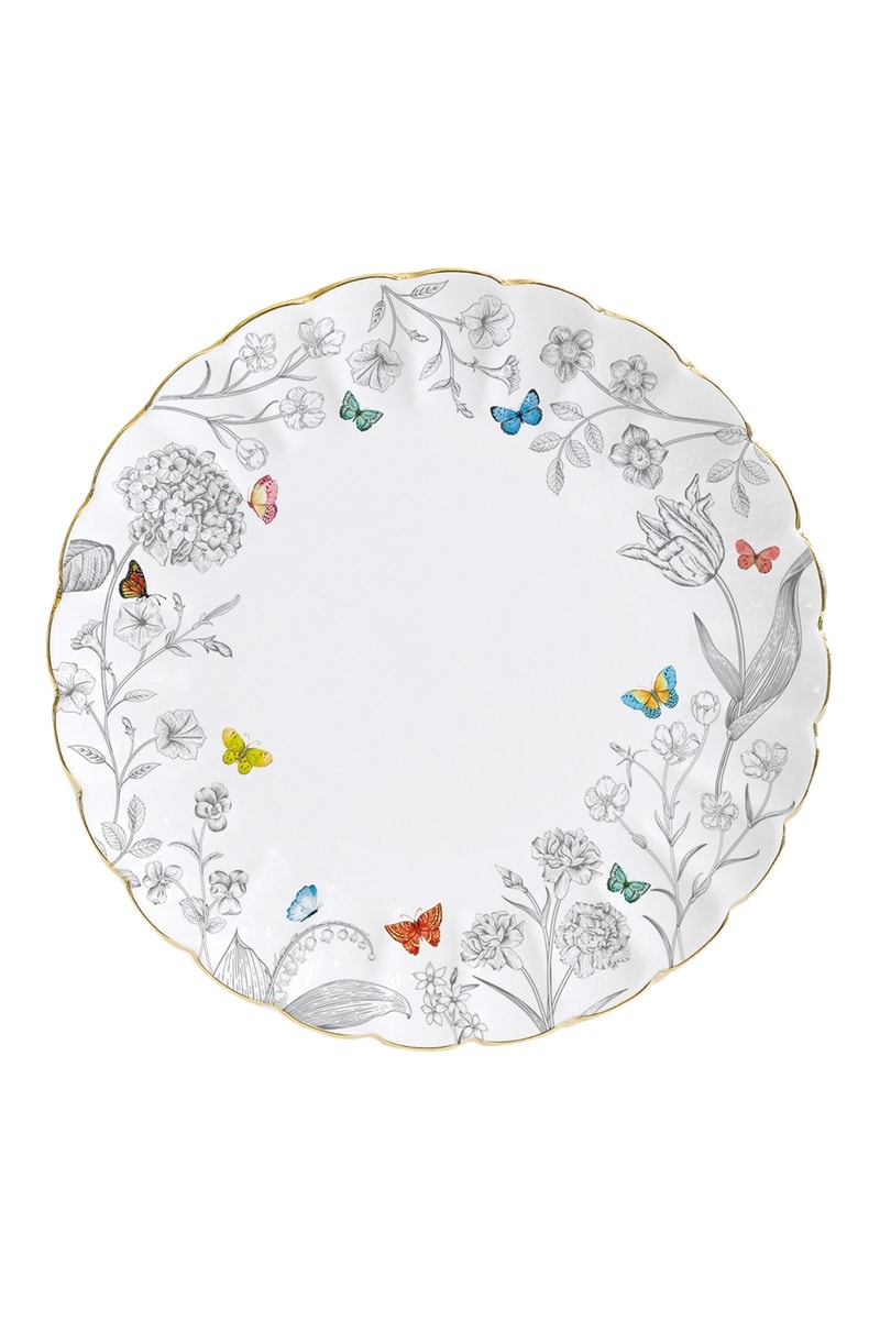 4 platos llanos de porcelana Fleurs et Papillons - 26 cm