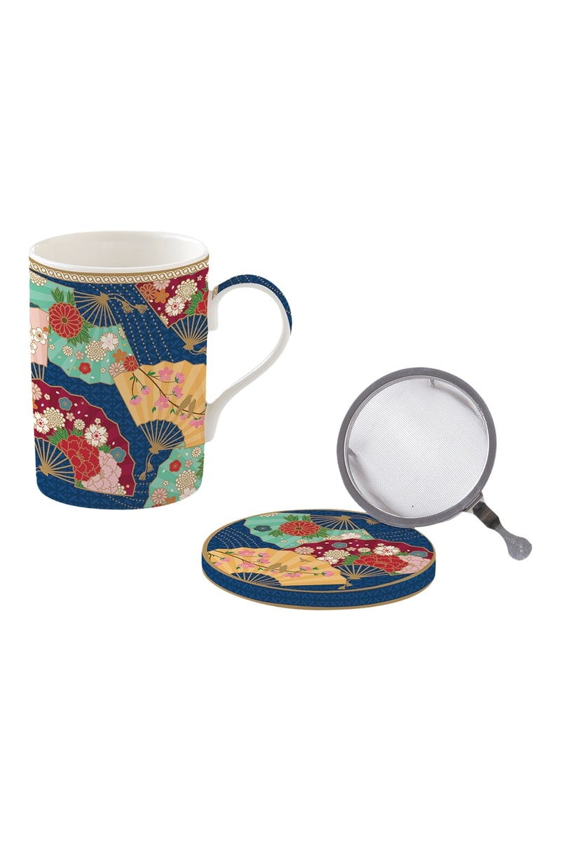 Taza de porcelana con tapa e infusor.