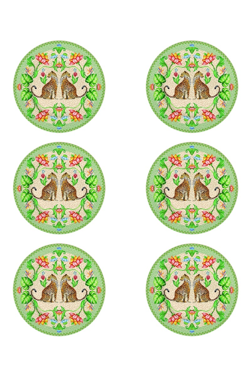 6 platos de postre de porcelana Jungle Vibes - 19 cm