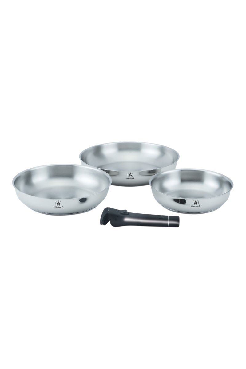 3 sartenes de acero inoxidable 202 y mango extraíble - 20/24/28 cm - 1,25/1,8/2,5 l