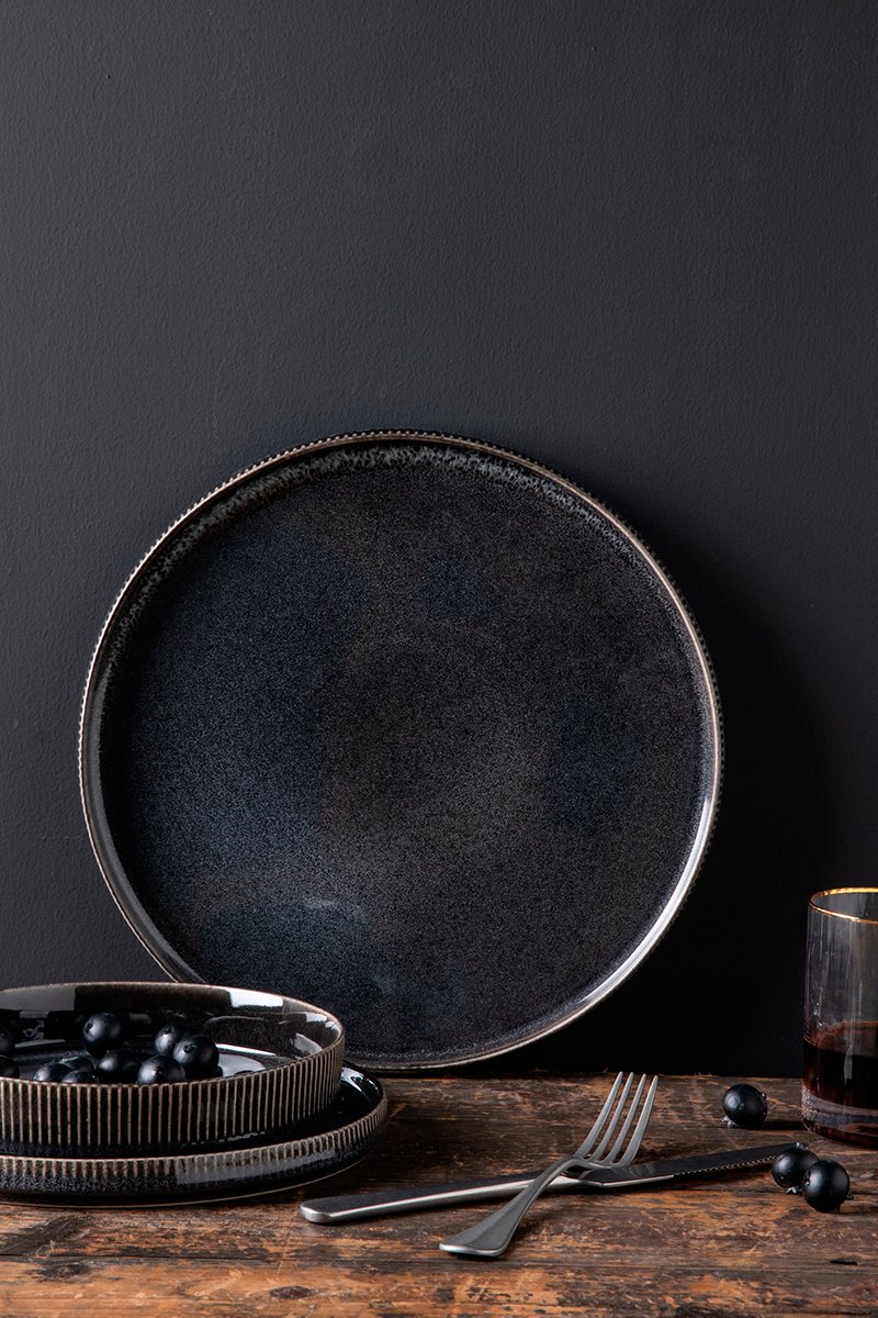 La vajilla de gres esmaltado reactivo está fabricada con arcilla cocida y se le han aplicado pigmentos de color pieza a pieza sobre los esmaltes reactivos. Está recubierta de un esmalte para darle un acabado liso y duradero. Esta técnica le ofrece una apariencia rústica, artesanal y exclusiva a cada pieza de la vajilla.