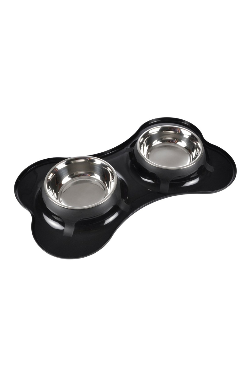 Comedero doble de acero inoxidable - Negro - 2 x 400 ml