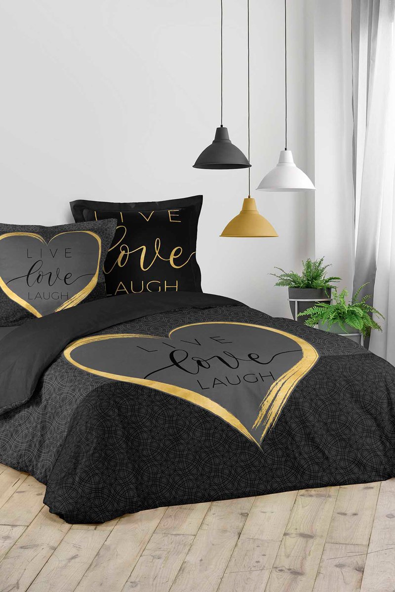 Juego de nórdico de algodón 42 hilos/cm² Crazy Love - Negro y dorado