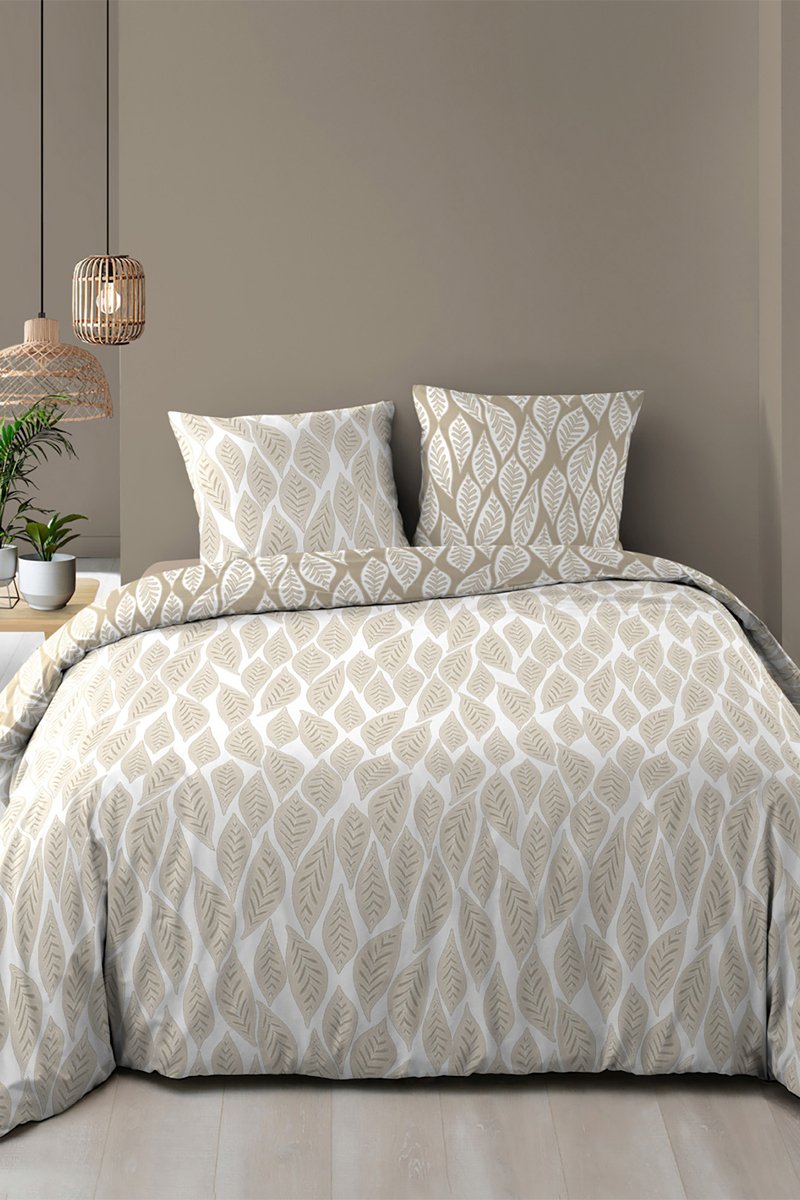 Juego de nórdico reversible de algodón Mareva - Blanco y topo