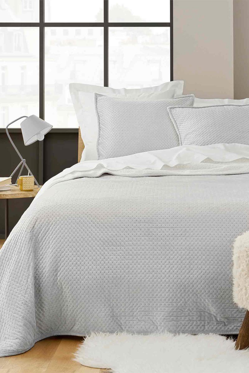 Colcha y fundas de almohada de terciopelo Mylene - Gris