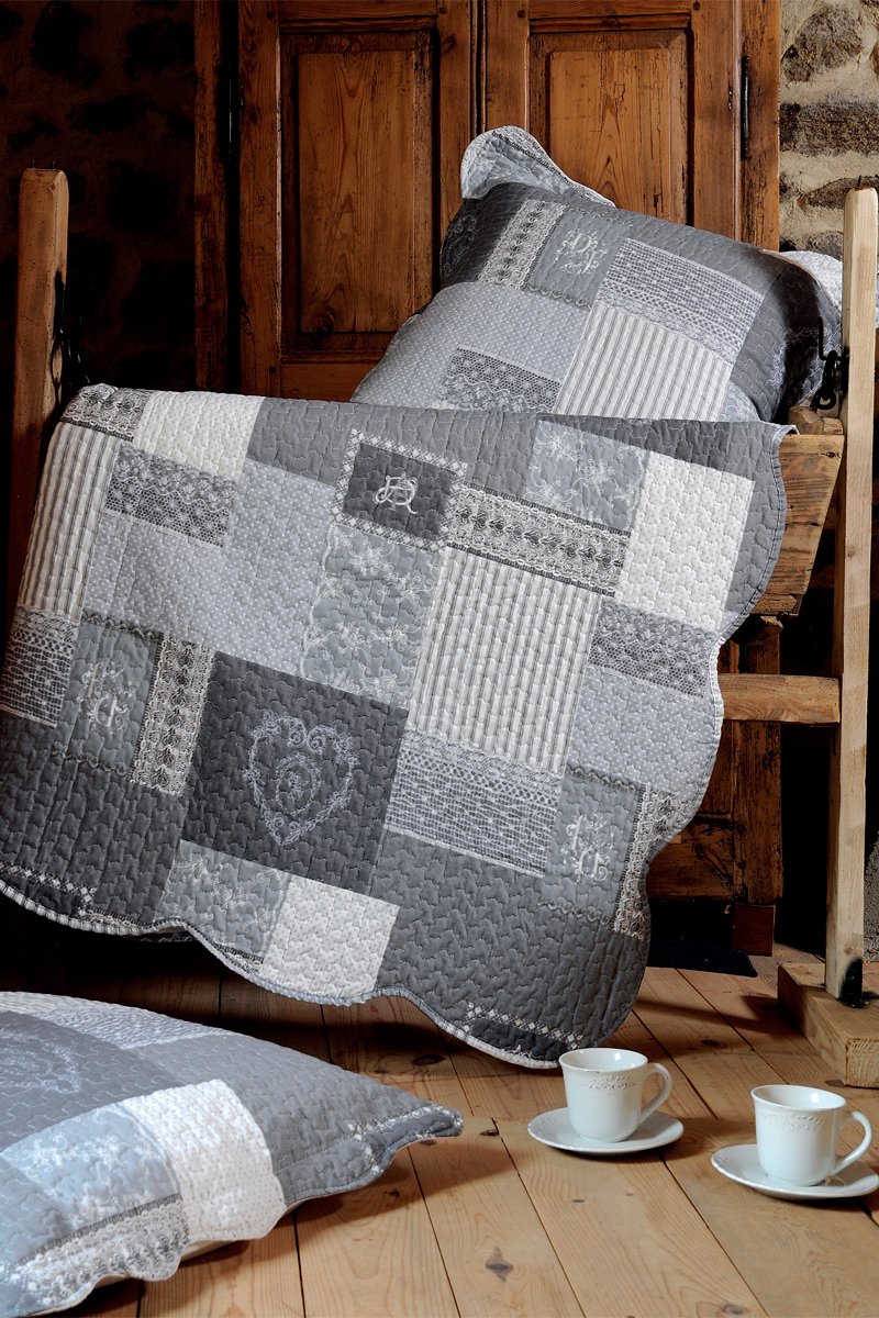 Conjunto de colcha Arkansas - Gris y blanco