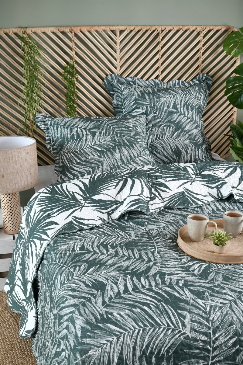 Colcha y funda de almohada Manisa - Verde y blanco