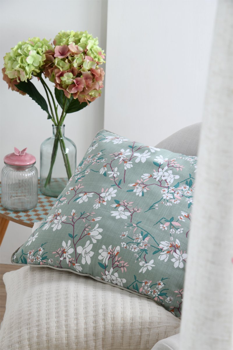 Cojín Nishio - Verde claro y blanco - 50 x 50 cm