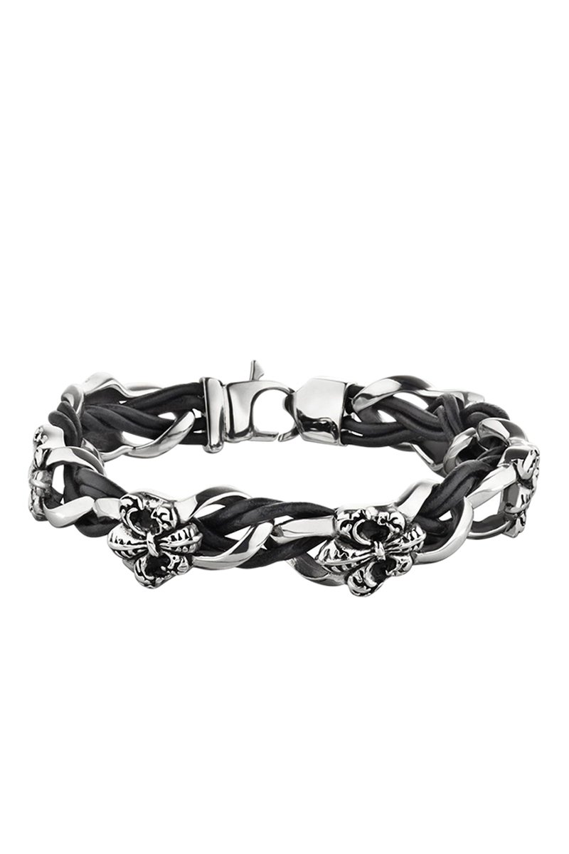 Pulsera de piel - Plateado y negro