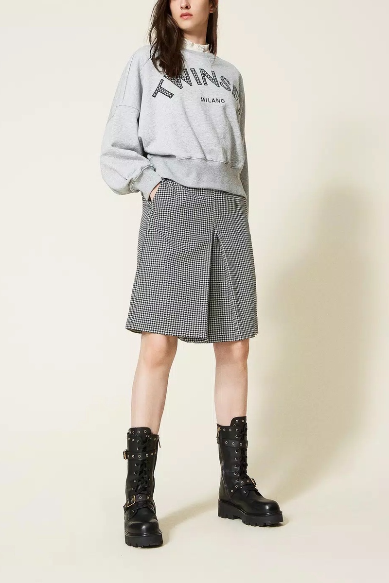 Falda pantalón de lana - Gris claro y negro