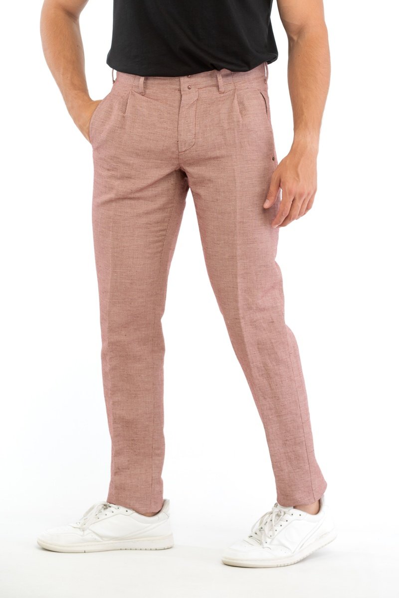 Pantalón slim fit de lino - Rojo teja - Incotex