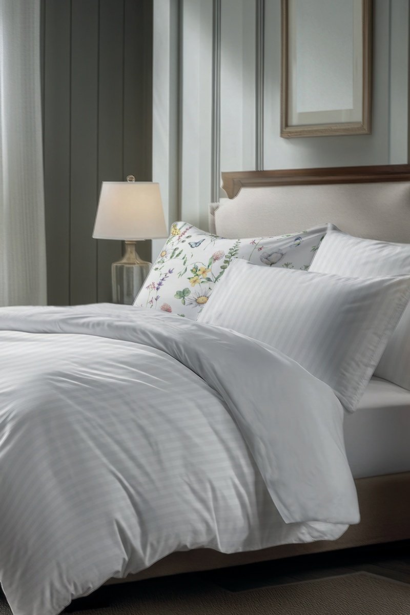 Juego de nórdico de satén de algodón Dobby - Blanco