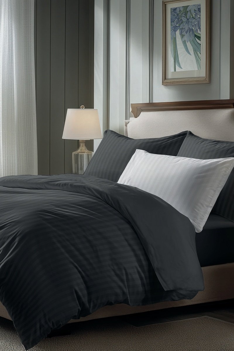 Juego de nórdico de satén de algodón 79 hilos/cm² Dobby - Negro
