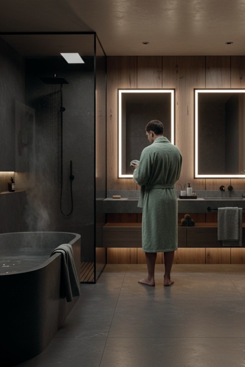 Albornoz de terciopelo de manga larga.