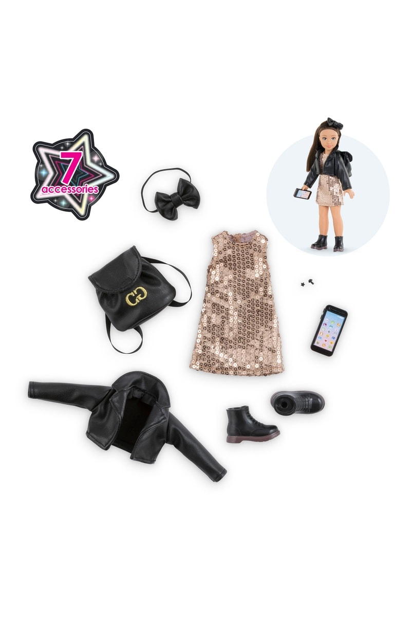 El armario de fiesta permite vestir a la muñeca Corolle Girls con un conjunto completo y accesorios para estimular la imaginación y el juego de imitación.