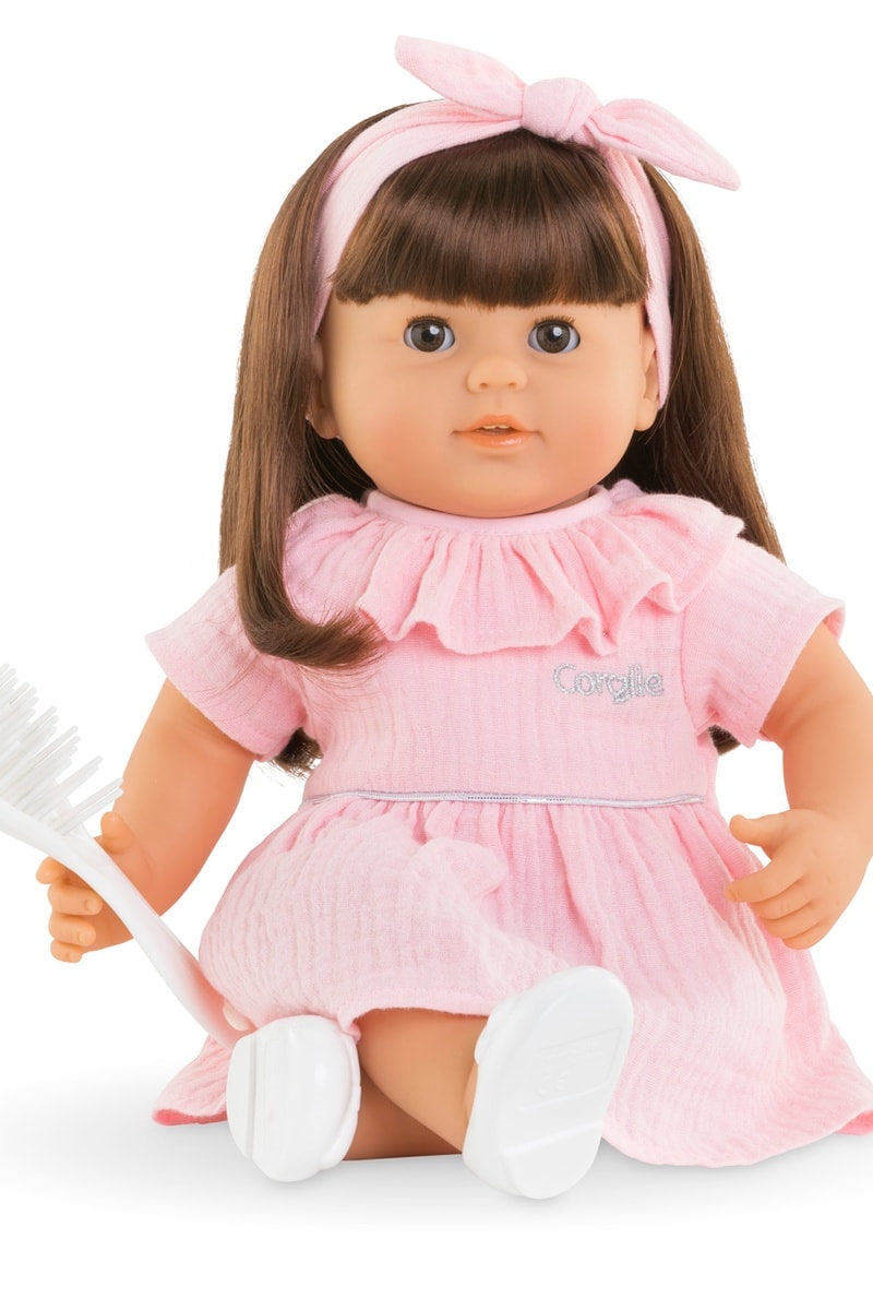 Tu peque puede peinar al muñeco Corolle Julie con el cepillo incluido, vestirlo y desvestirlo gracias a su vestido y su cinta para el pelo.