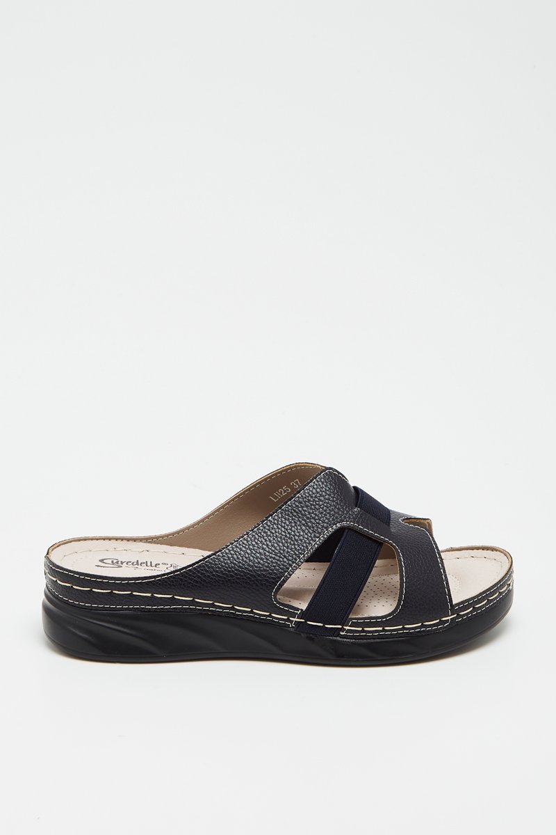 Sandalias de piel de cuña - Azul marino