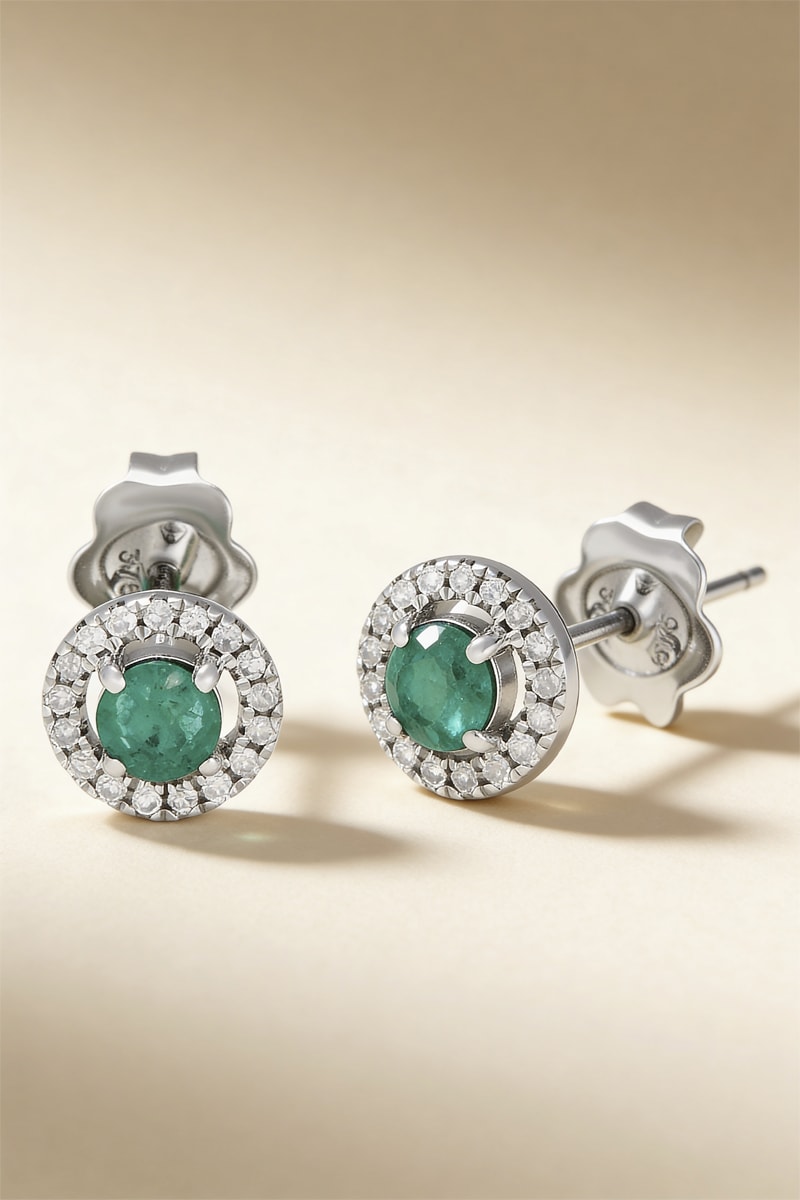 Dormilonas de oro blanco con 34 diamantes y 2 esmeraldas.