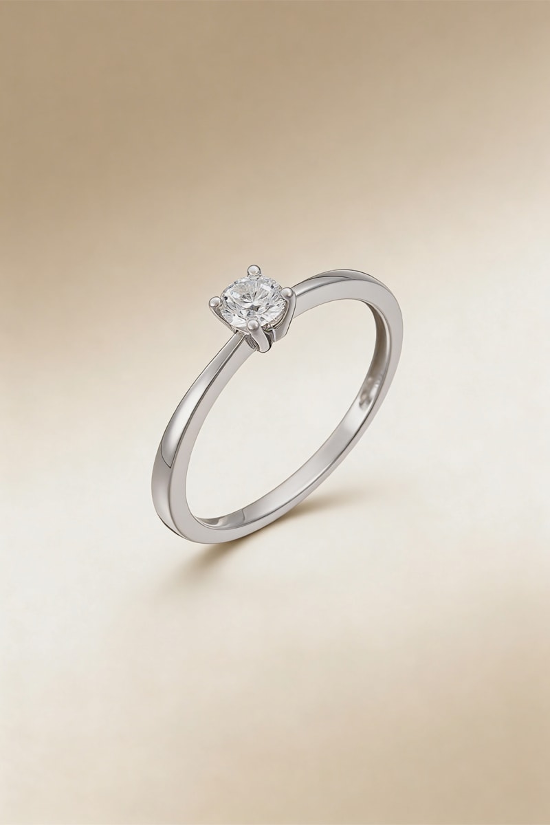 Solitario de oro blanco con un diamante.