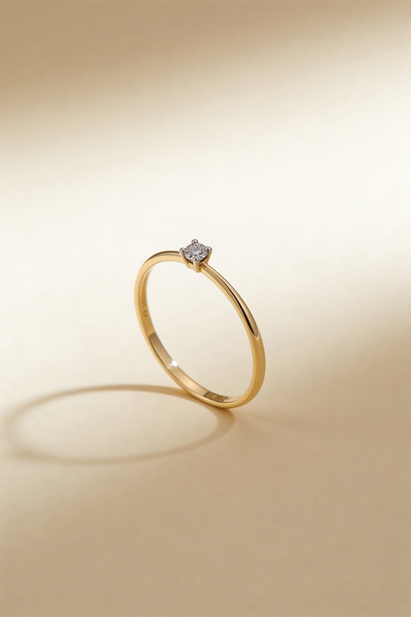 Solitario de oro amarillo con un diamante.