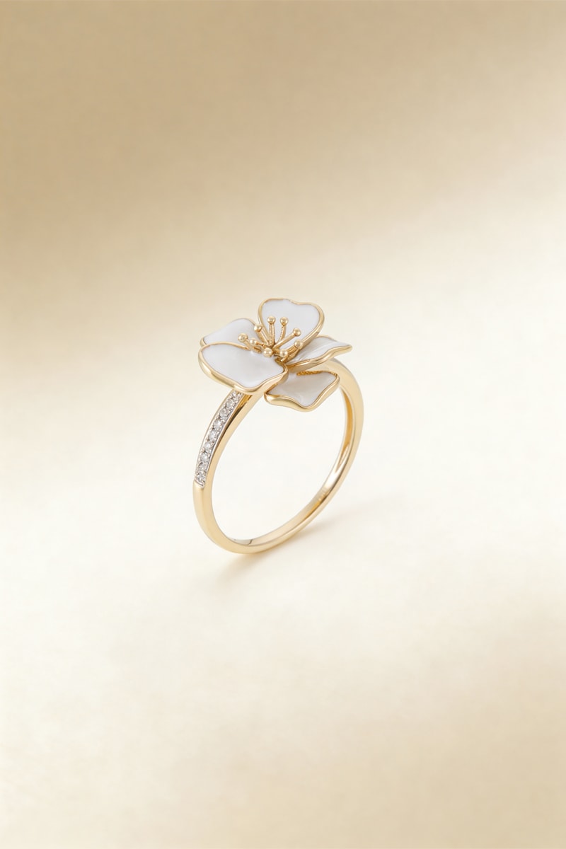 Anillo Orquídea - Oro amarillo, diamantes y esmalte