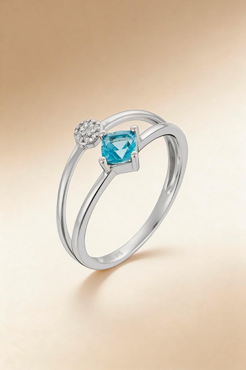 Anillo Orbite - Oro blanco, diamantes y topacio