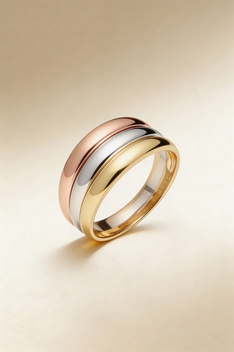 Anillo de oro amarillo, oro blanco y oro rosa.