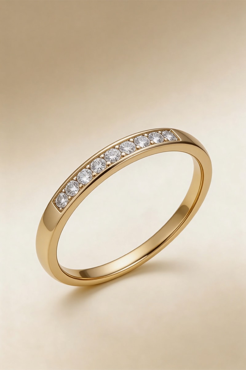 Alianza de oro amarillo con 9 diamantes.