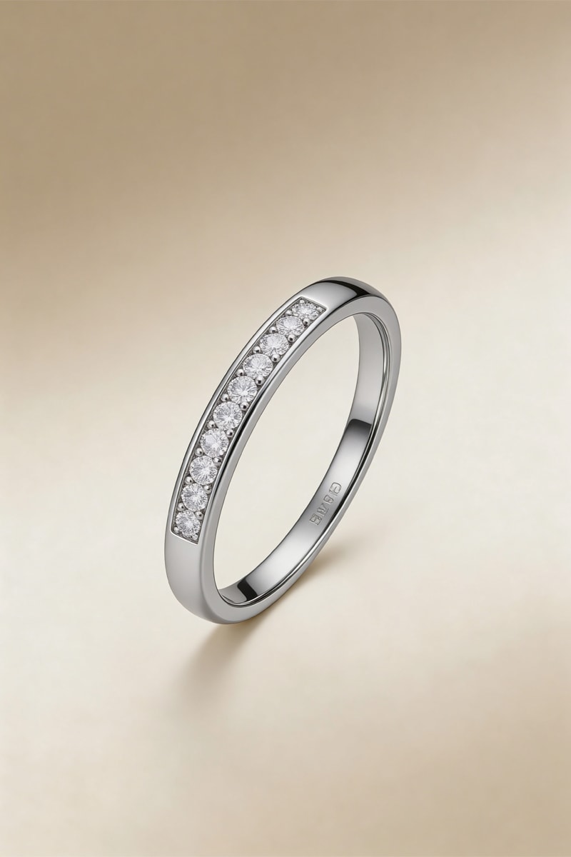 Alianza de oro blanco con 9 diamantes.