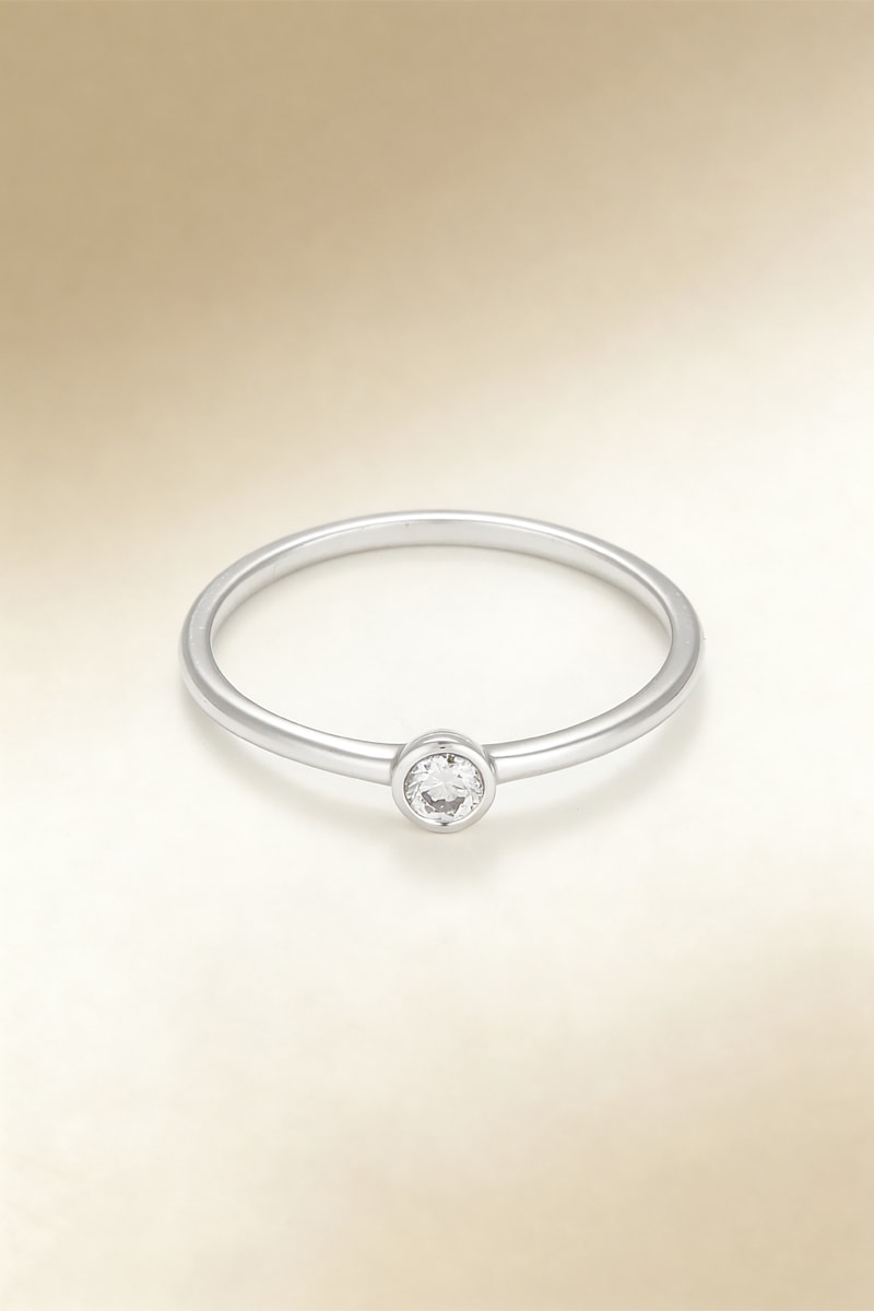 Solitario de oro blanco con un diamante.