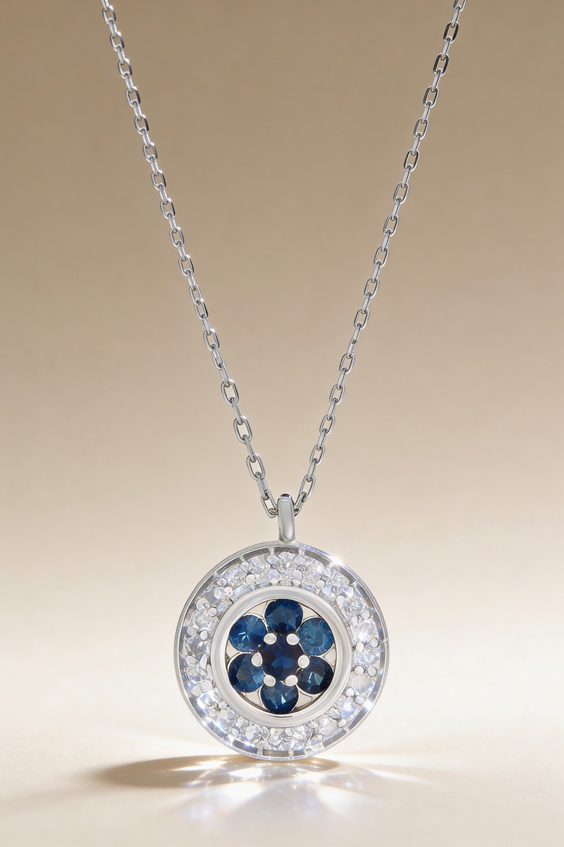 Colgante con 20 diamantes y 7 zafiros.