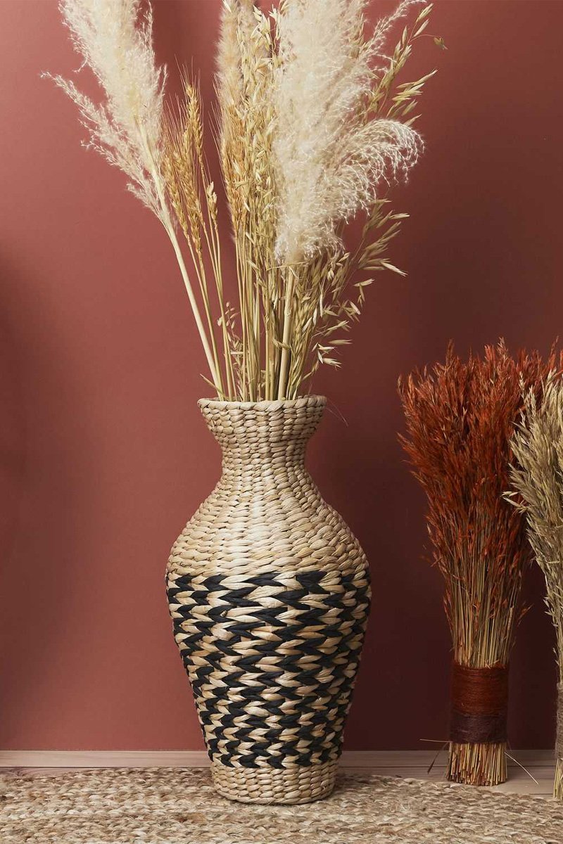 Jarrón de ratán - 42 cm x 21 cm x 21 cm - Beige y negro