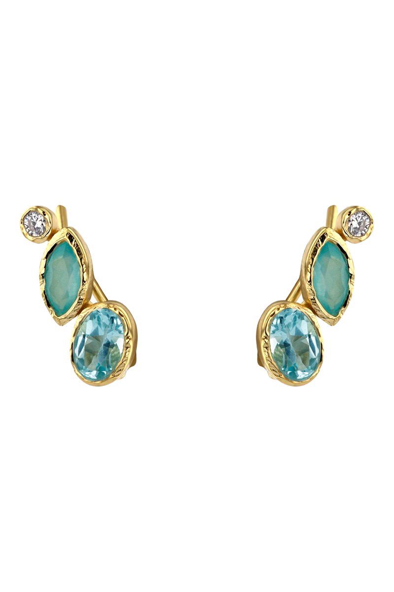 Pendientes chapados en oro amarillo con un topacio, una calcedonia y una circonita.