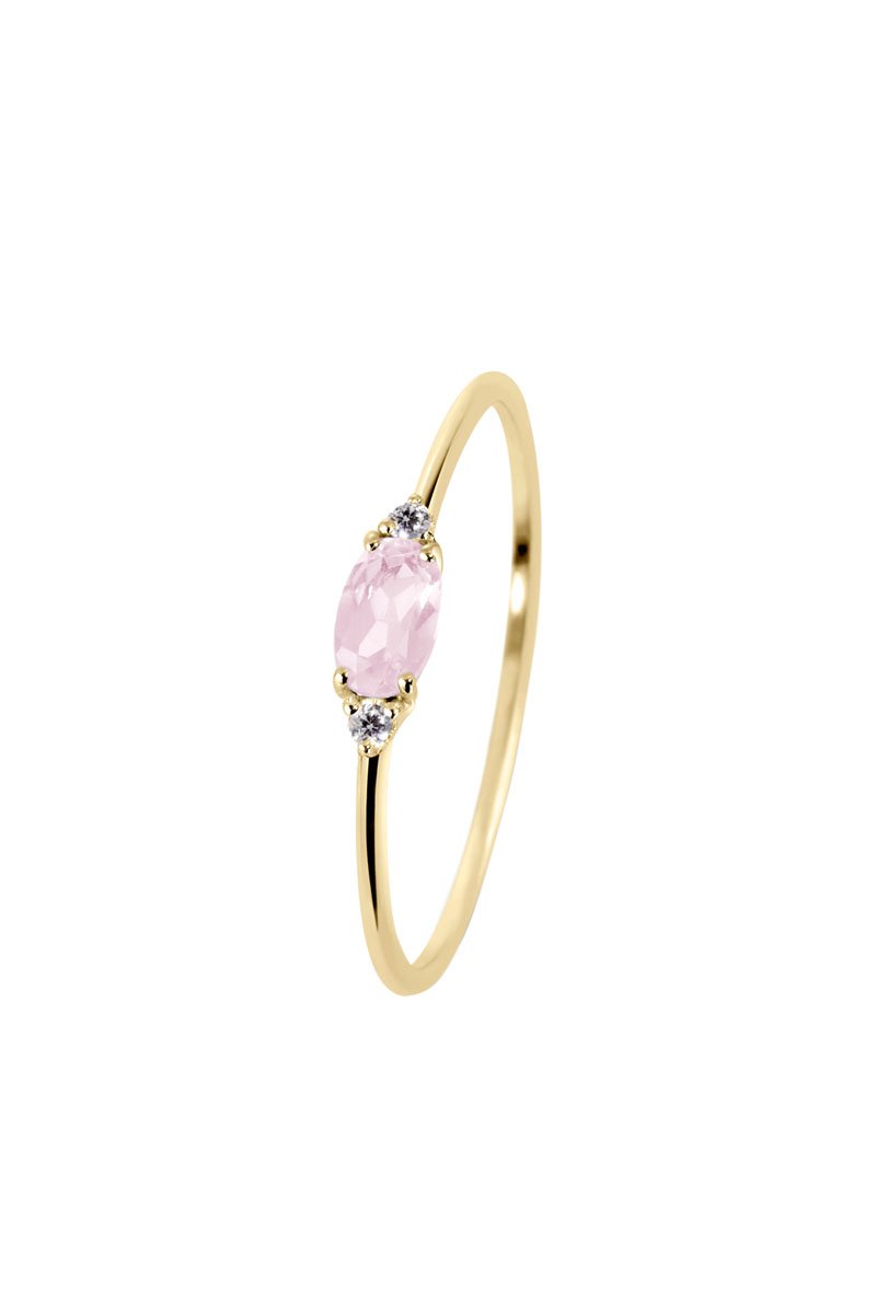 Anillo de plata chapada en oro amarillo con un cuarzo y circonitas.