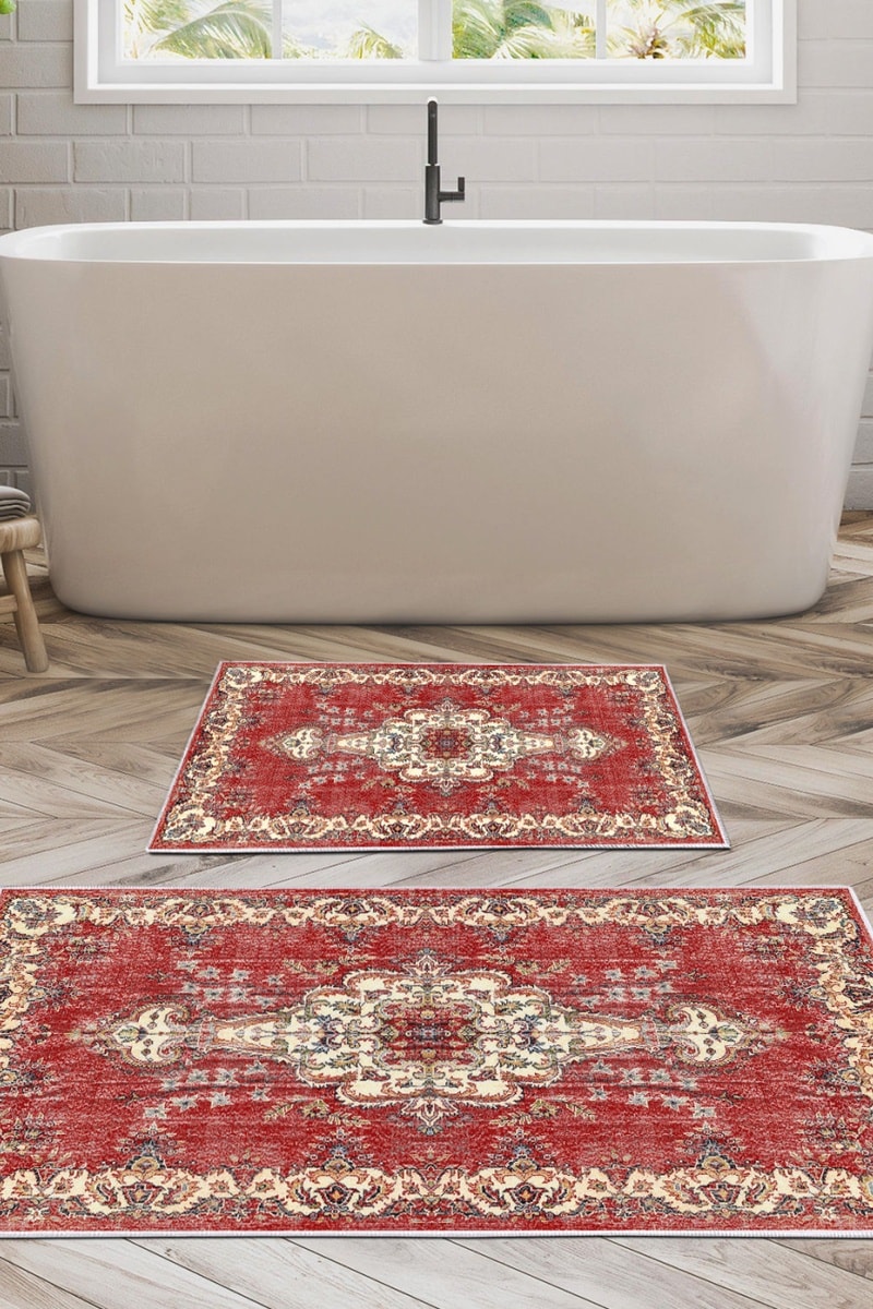 2 alfombras de baño - Rojo - 50 x 60 cm, 60 x 100 cm