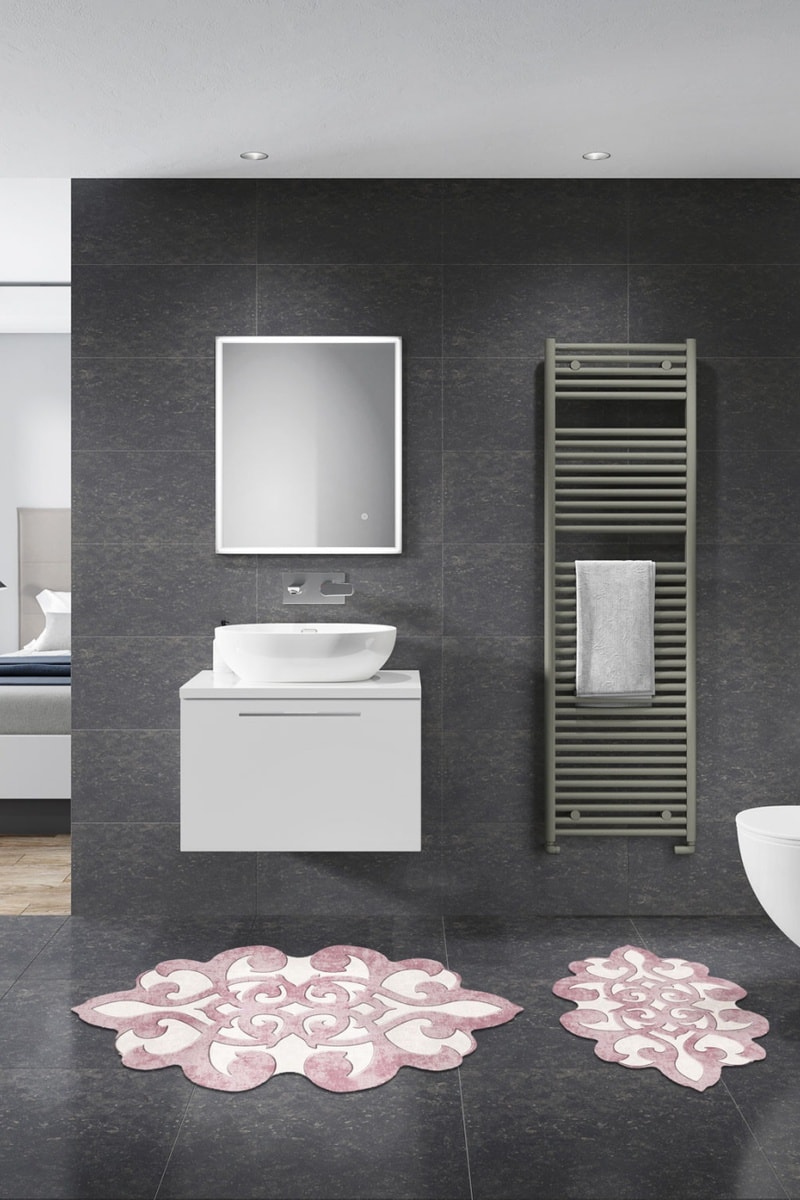 2 alfombras de baño - Rosa empolvado - 50 x 60 cm, 60 x 100 cm