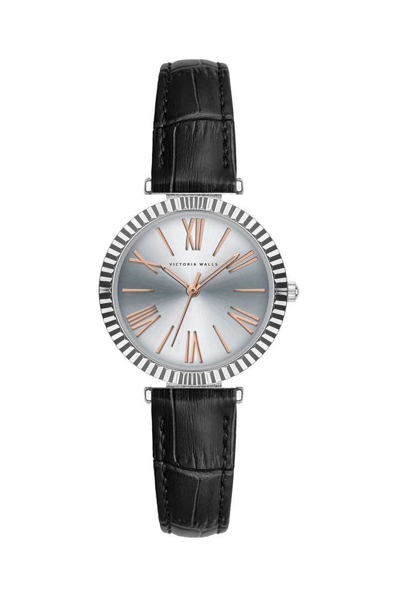 Reloj de cuarzo de piel - Negro y plateado - Victoria Walls