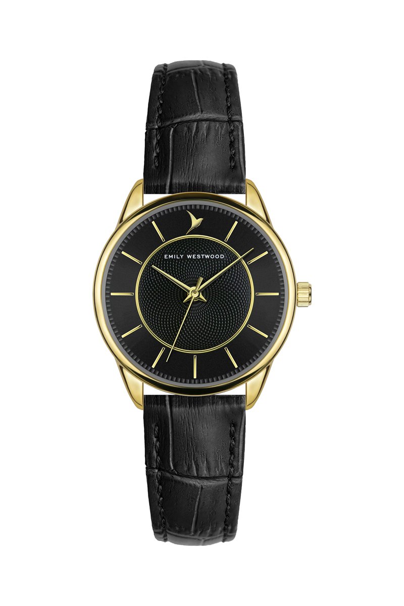 Reloj de cuarzo de piel - Negro y dorado - Emily Westwood