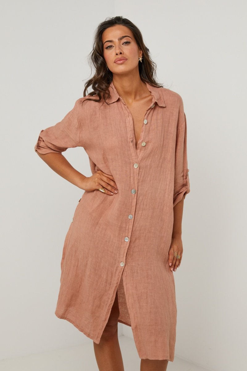 Vestido camisero - 100 % lino - y