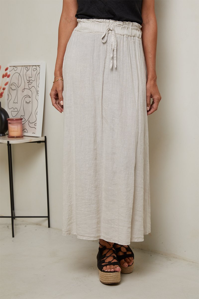 Falda larga de talle alto - 100 % lino - Beige