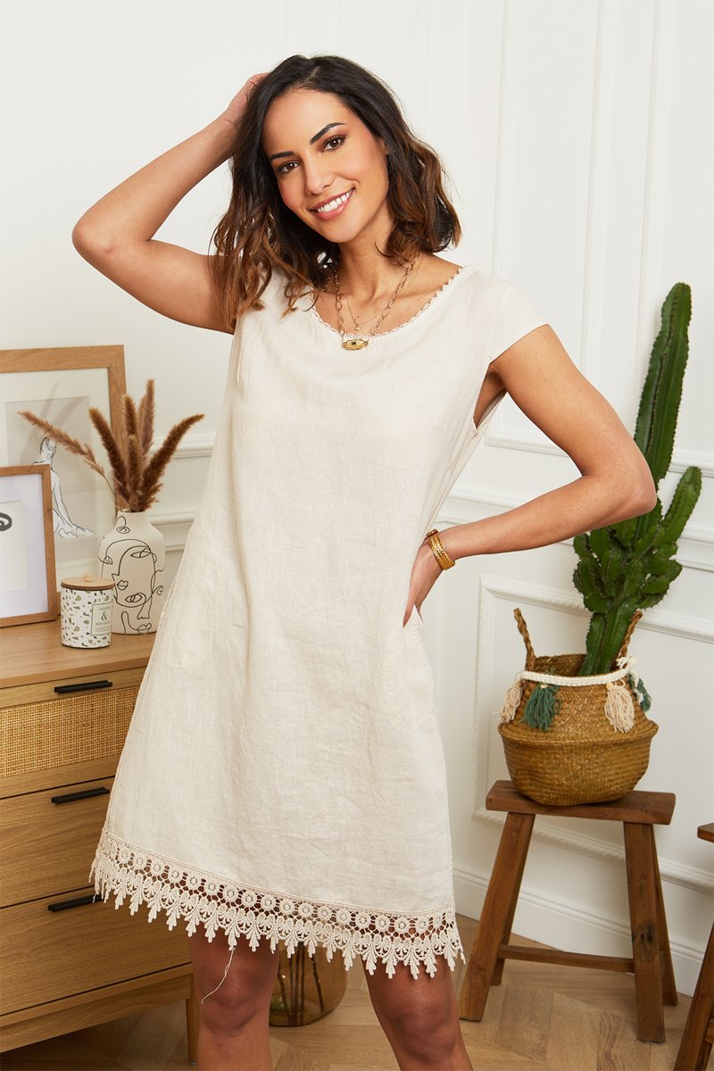 Vestido evasé corto - 100 % lino -