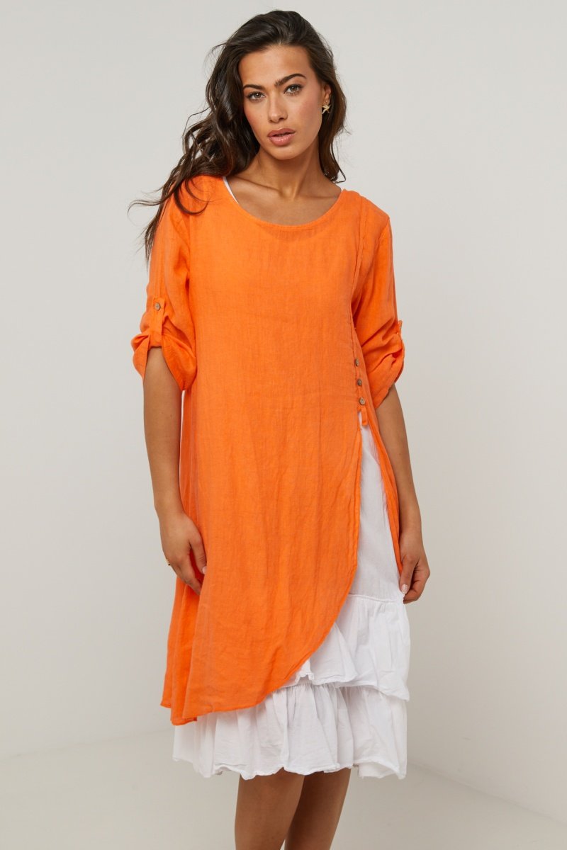 Las prendas de lino están teñidas a mano, por lo que pueden tener ligeras diferencias de color.